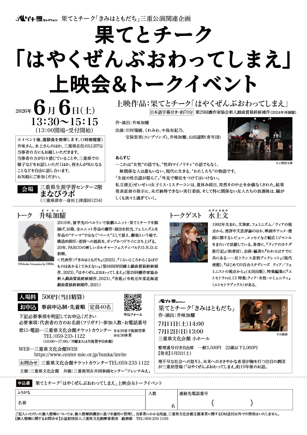 升味さん、水上さんのほか、三重県在住のLGBTQ当事者の方にもお越しいただきます。